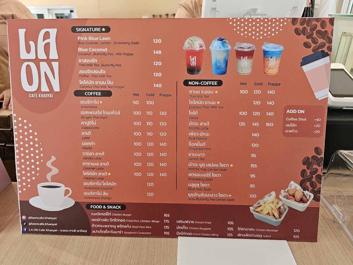 LA ON Cafe Khaoyai - ระออน คาเฟ่ เขาใหญ่ Menu